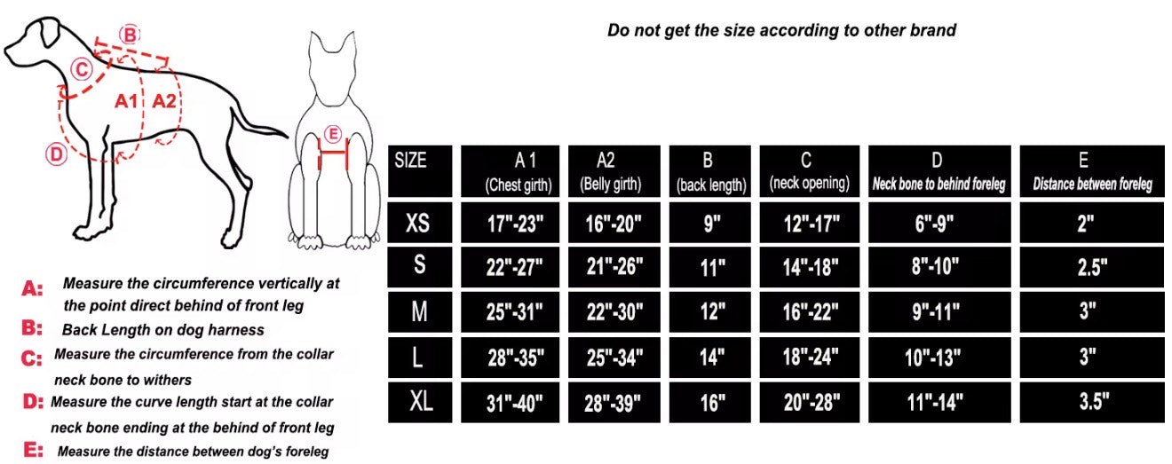 Use your dog’s current weight to select the correct size. If your dog is between sizes or still growing, size UP.